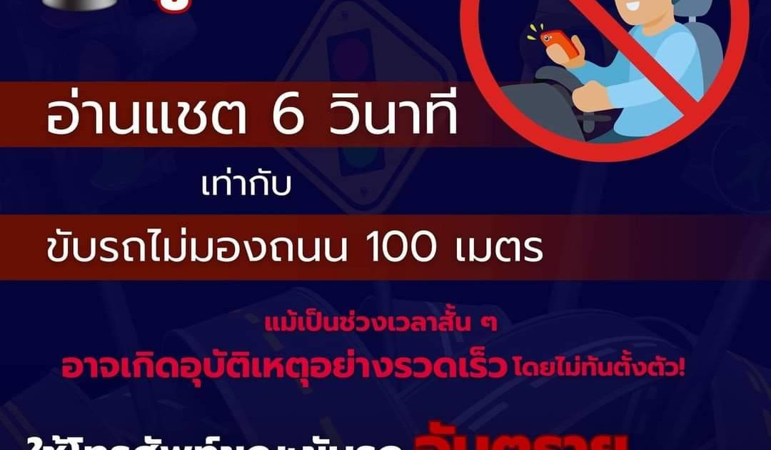 ทุกครั้งที่อ่านแชตเพียง 6 วินาที เท่ากับ ขับรถโดยไม่มองถนน 100 เมตร