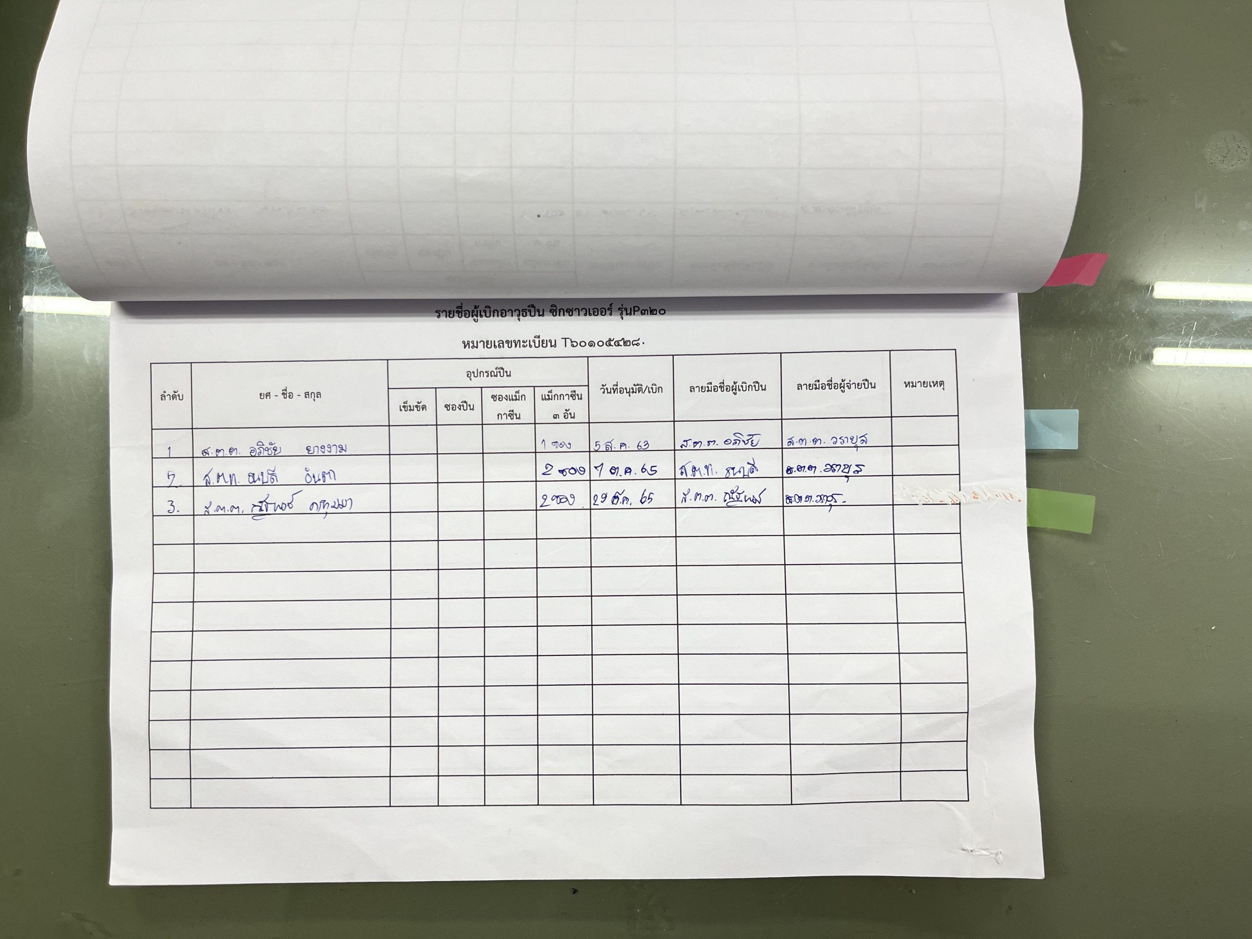 เมื่อมีการเบิกยืมอาวุธปืนของทางราชการ และลงหลักฐานการเบิกยืมพร้อมภาพถ่าย