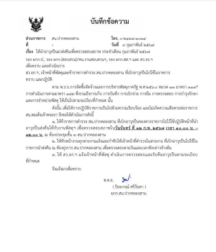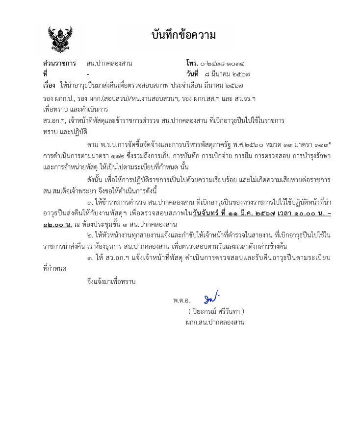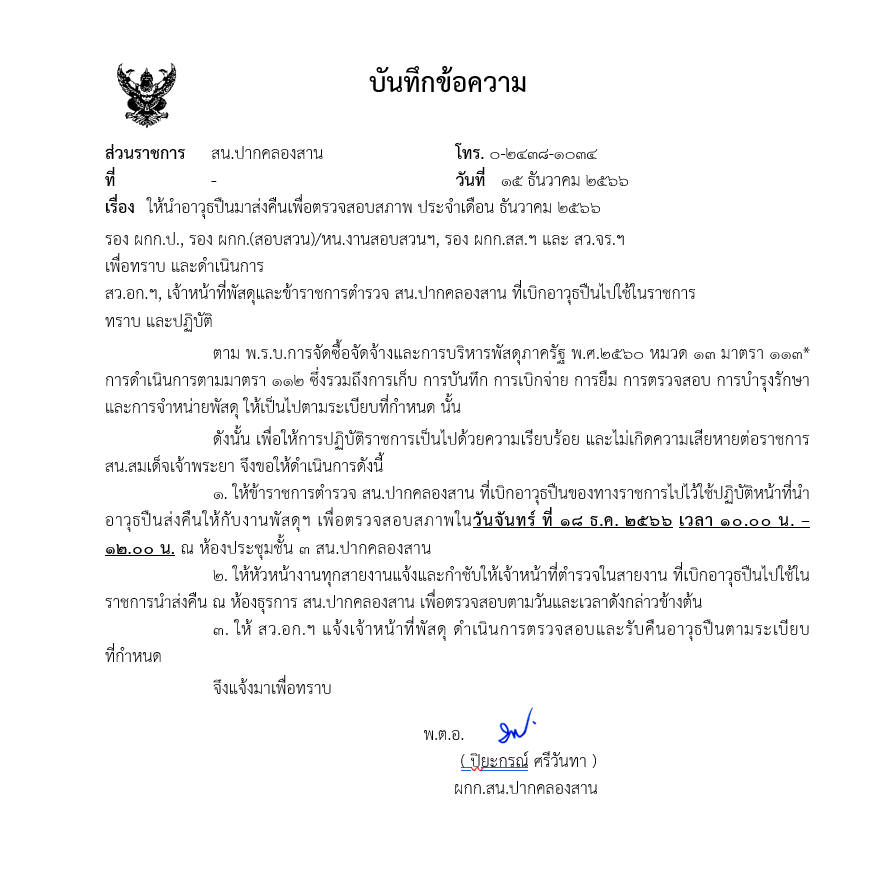 - หนังสือ ตร. ที่ 0007.22/3417 ลง 5 พ.ย.2565 เรื่อง ให้ตรวจสอบอาวุธปืนและเครื่องกระสุนปืนในความรับผิดชอบให้เป็นปัจจุบัน